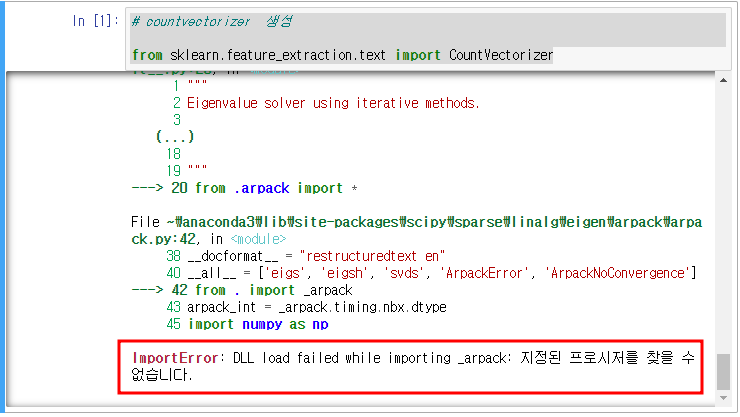 ImportError: DLL load failed while importing _arpack: 지정된 프로시저를 찾을 수 없습니다.